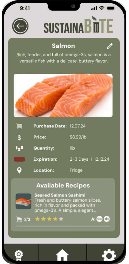 Rather than treating recipes as aspirational content, SustainaBite uses the ingredients users already have to surface meal ideas they can actually act on.