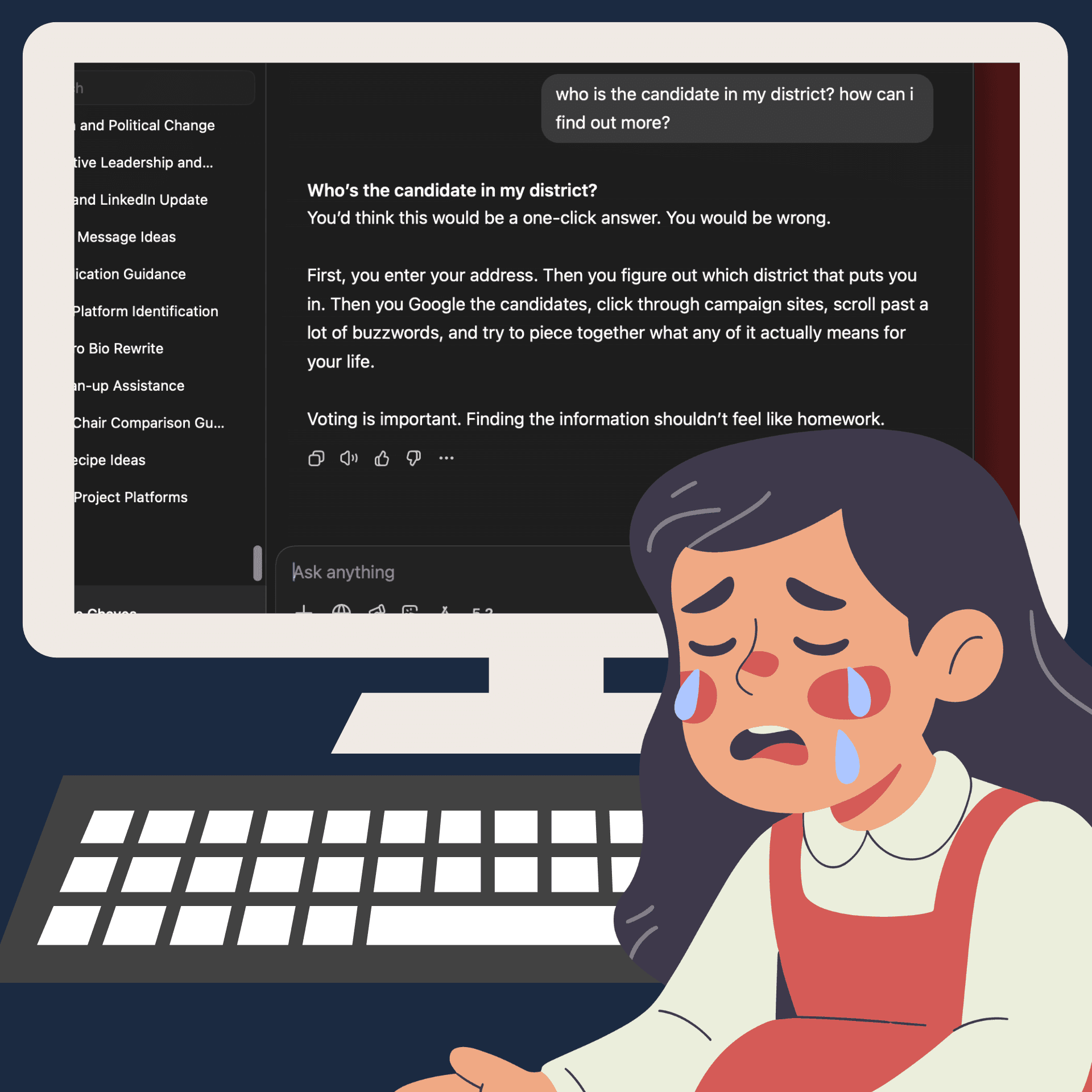 This project genuinely shifted how I think about elections, technology, and civic engagement. It reinforced that design decisions (even invisible ones!) carry real consequences.